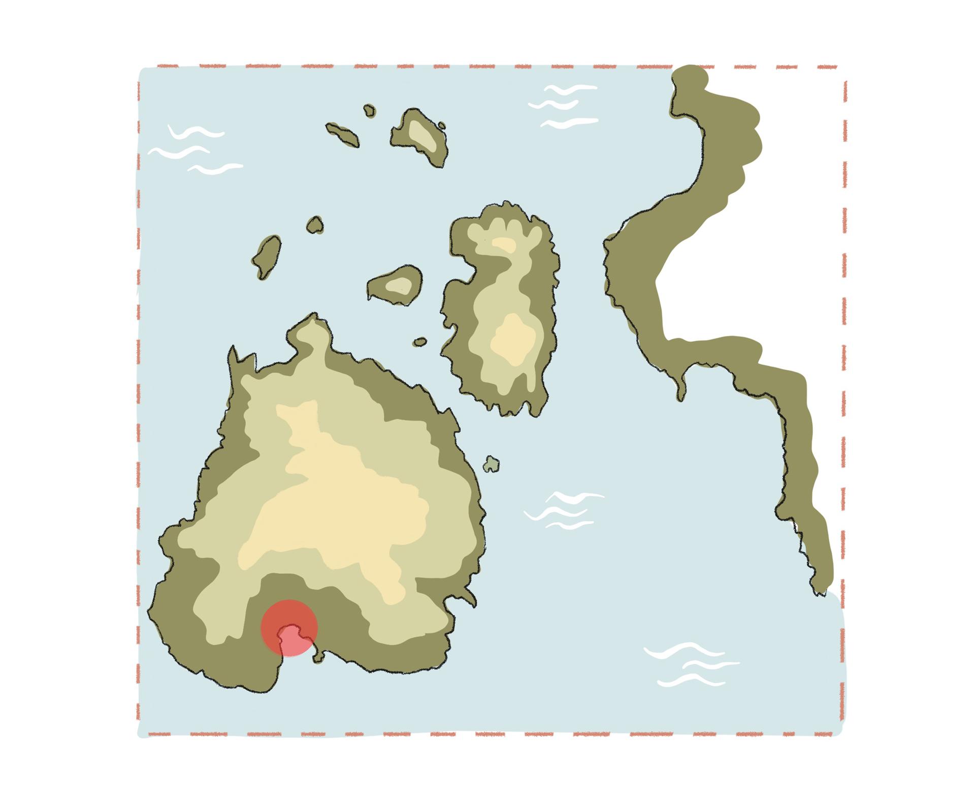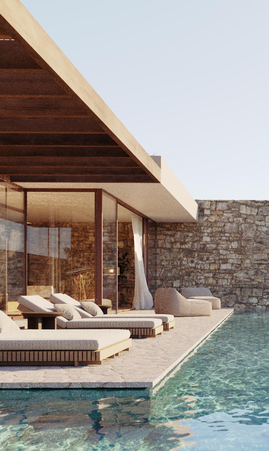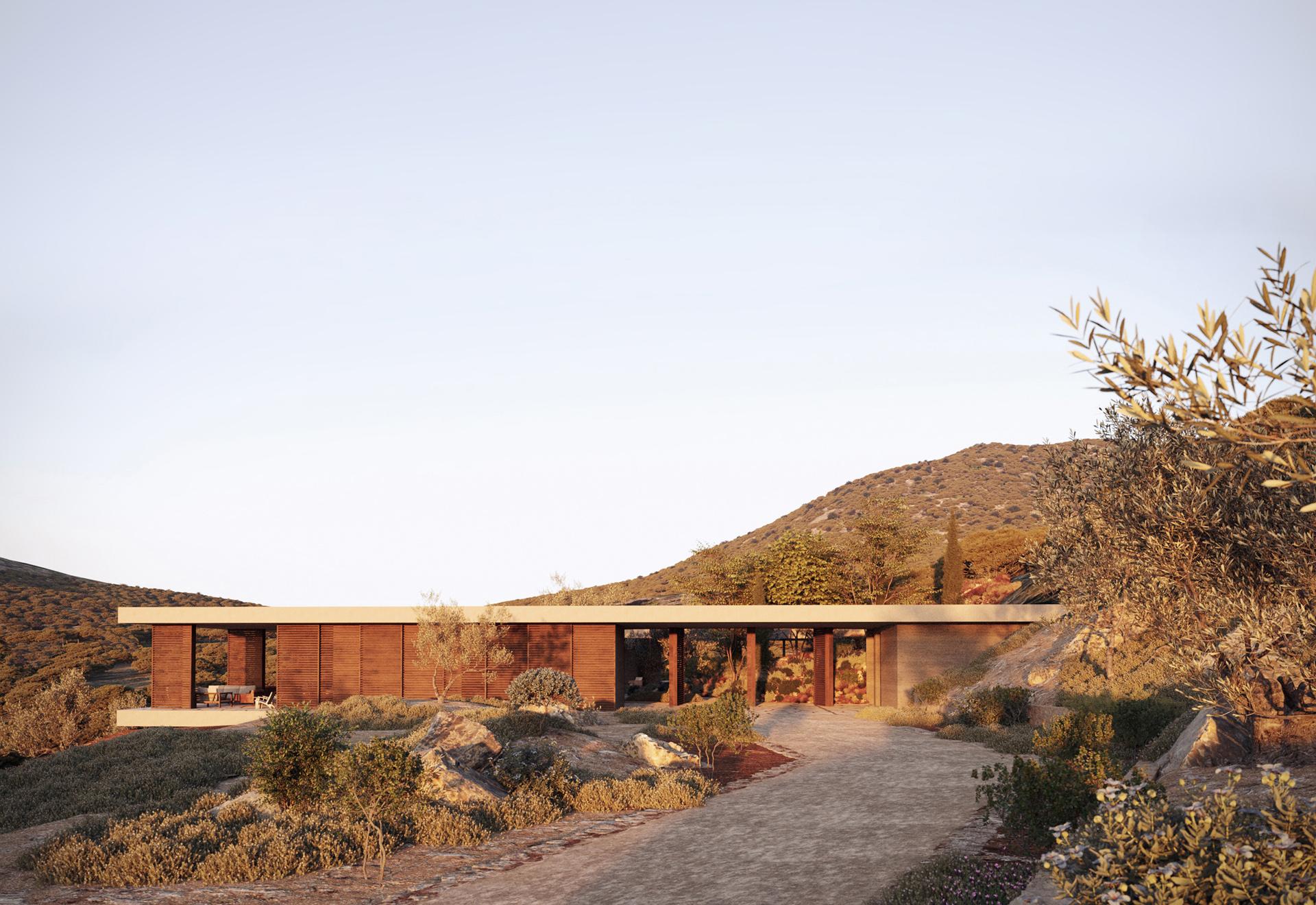 Mjesto planiranog resorta je na obali otoka Megalonisos u mahom netaknutmom, egejskom arhipelagu Petalioi. Fragmenti kulturnog krajolika na otoku svjedoče o nekadašnjem, jednostavnom životu čovjeka-pastira te njegovom suživotu sa životinjama, biljakama i prirodnim fenomenima. Projektirane, arhitektonske geste polaze od skromnosti i poštovanja prema krajoliku te njegovom održavanju.
