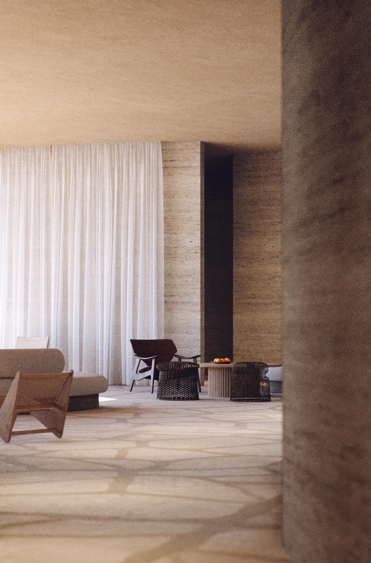 Projekt, odnosno priča o Megalonisosu, oblikovana je iz prirodnih elemenata otoka – kamena, mora, biljaka, vjetra, sunca i zvijezda. Svaki od njih utkan je u prostorni i iskustveni sloj novog života u resortu. Elementi postaju karakterestika arhitekture koja omogućuje sporiji ritam života i otkrivanje vrijednosti svakodnevnog bivanja.